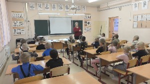 Ребята побывали в учебном классе, посидели за настоящей школьной партой и приветствовали учителя, как настоящие первоклашки.